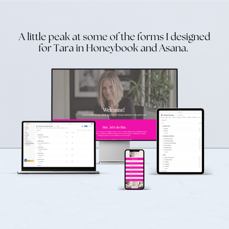 Tara reached out because her backend systems were not set up properly. She had a CRM and Project Management tool but didn’t have it set up to match how she ran her business. As a Brand and Content Strategist and Graphic Designer, she needed her CRM and project management tools to feel polished, aligned with her branding, and supportive of the new services.